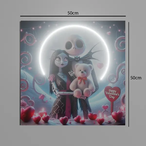 ¡Haz que tu hogar se llene de la magia y el encanto de Halloween Town con el Cuadro Decorativo Con Luces Extraño Mundo de Jack y Su Novia V316! Esta pieza es la combinación perfecta de arte, estilo y tecnología, que transformará tu espacio con un toque de lo más peculiar y encantador.
