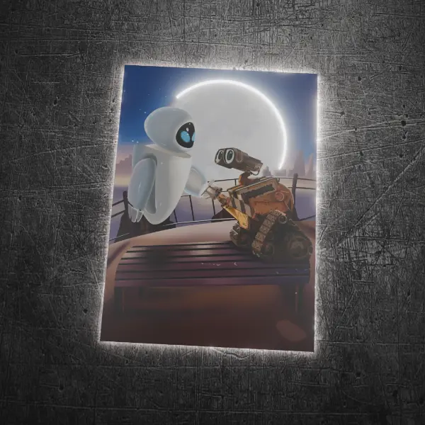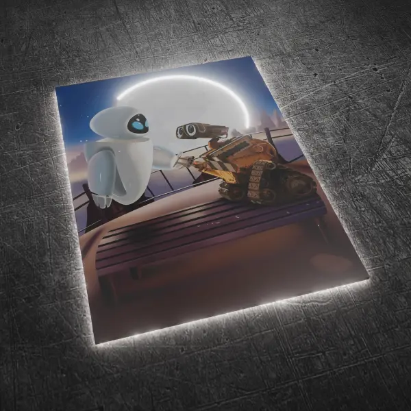 ¡Transforma tu hogar con el toque tierno y futurista del Cuadro Decorativo Con Luces Wall-E y Eva V317! Este hermoso diseño captura la esencia de la icónica película de Pixar, mostrando a los adorables robots Wall-E y Eva en un momento lleno de amor y esperanza. Las luces LED integradas iluminan de manera suave y cálida la imagen, creando un ambiente acogedor y lleno de magia, perfecto para cualquier espacio que busque un toque especial y único.