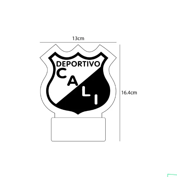La Lámpara Base LED Escudo Deportivo Cali V285 es el accesorio perfecto para los verdaderos hinchas del “Verde de la montaña”. Con un diseño detallado y exclusivo que resalta el escudo del Deportivo Cali, esta lámpara no solo ilumina tu espacio, sino que también refleja tu pasión por uno de los clubes más grandes del fútbol colombiano.