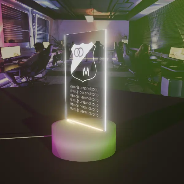Lámpara Base Led USB Personalizable con escudo de Millonarios Fc. Ideal para regalo o para adornar tu habitación